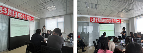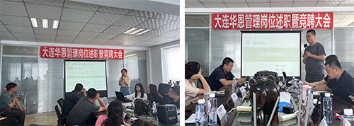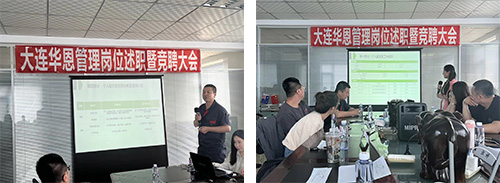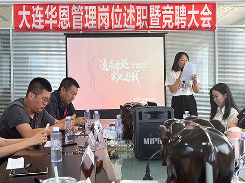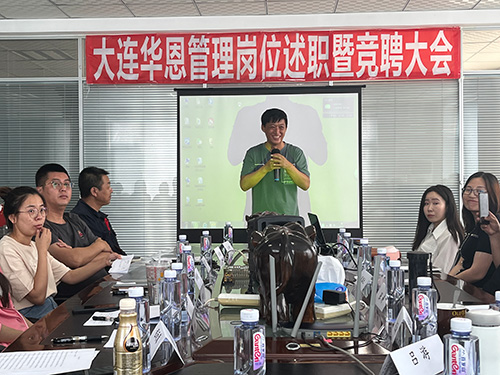 为了提高各部门领导的工作效力,促进工作的顺利开展,选拔优秀人才补充到领导梯队,2022年7月2日,大连华恩有限公司召开述职暨竞聘大会。会议由办公室组织主持,全体管理人员参加了此次大会。会议伊始,由公司陈长华总经理致开幕词,陈总经理首先对公司的新成员表示了欢迎,同时对参与述职与竞聘的人员给与了鼓励。